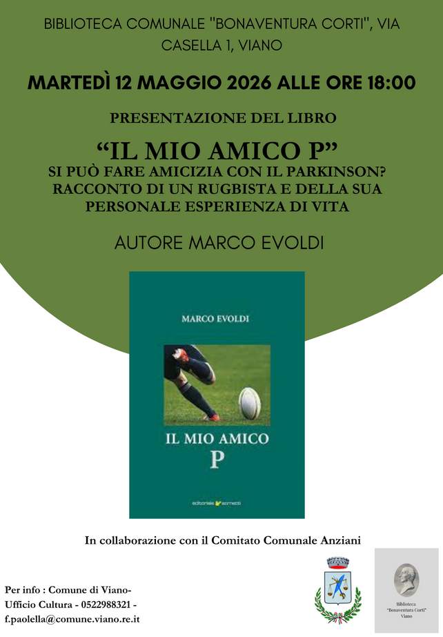 Martedi' 12 maggio alle ore 18.00 presso la Biblioteca Comunale in Via Casella n.1 presentazione del libro " Il mio amico P "