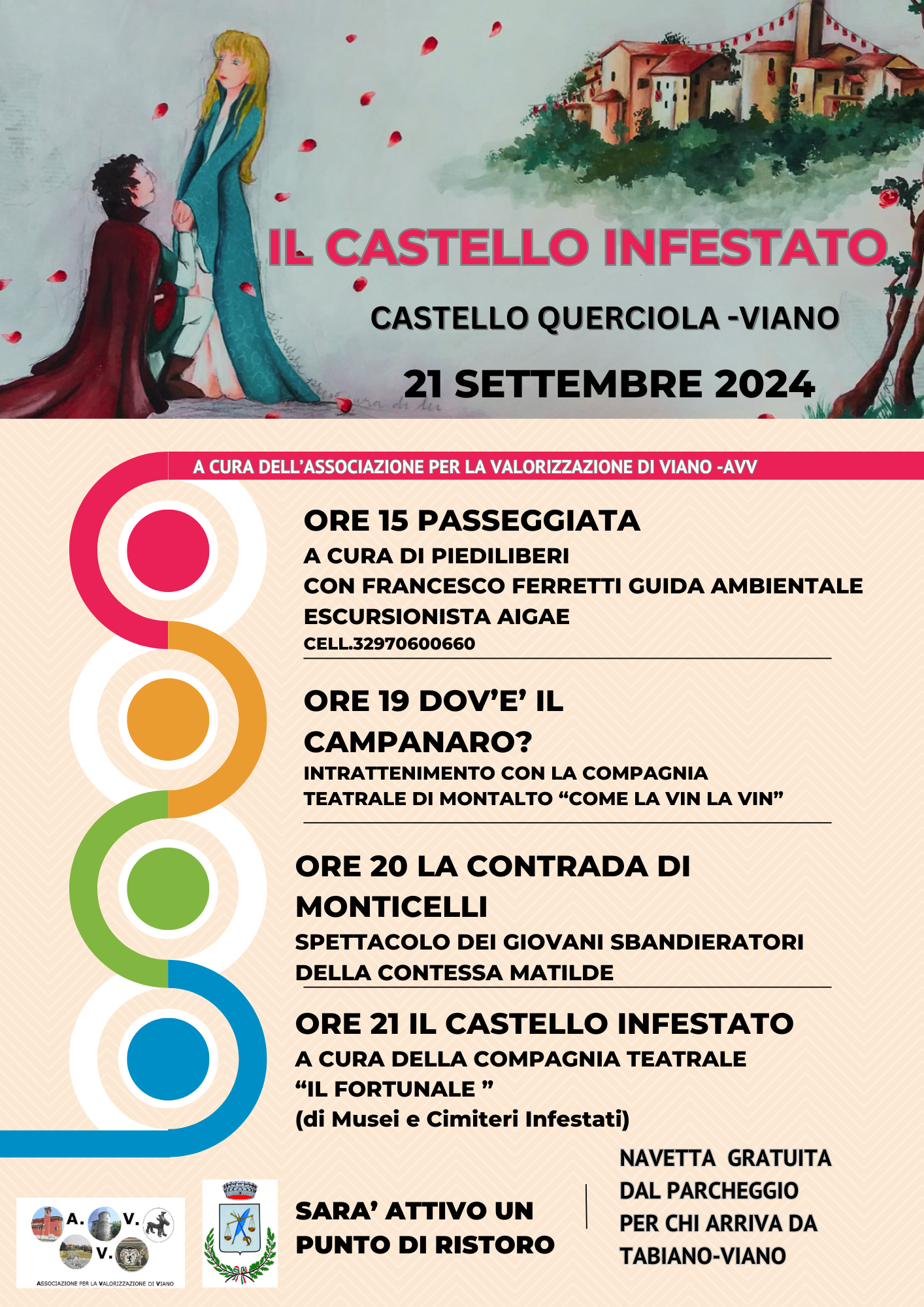 Questo evento si svolgerà il 21 settembre 2024 al Castello di Querciola - Viano, ci sarà un'attività di gruppo e diversi spettacoli ai seguenti orari: