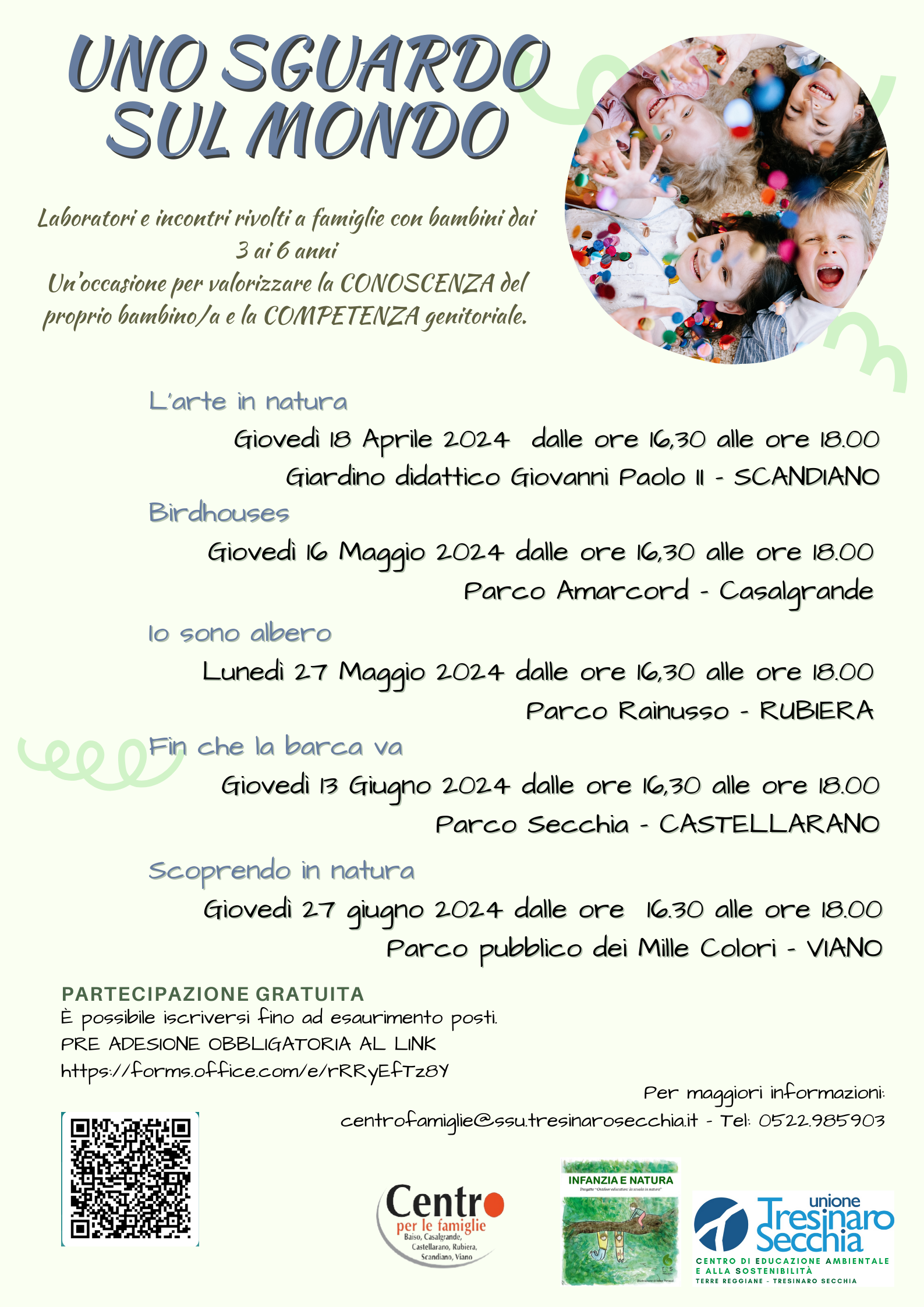 Per informazioni Centro per le Famiglie 0522-985903 oppure centrofamiglie@ssu.tresinarosecchia.it