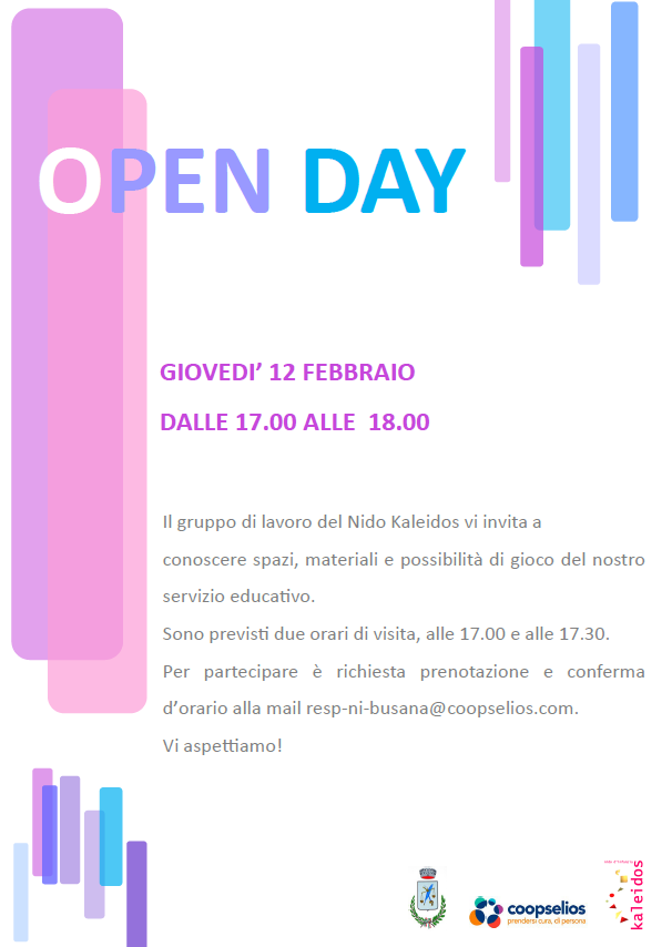 Per partecipare è richiesta prenotazione e conferma d’orario alla mail resp-ni-busana@coopselios.com.