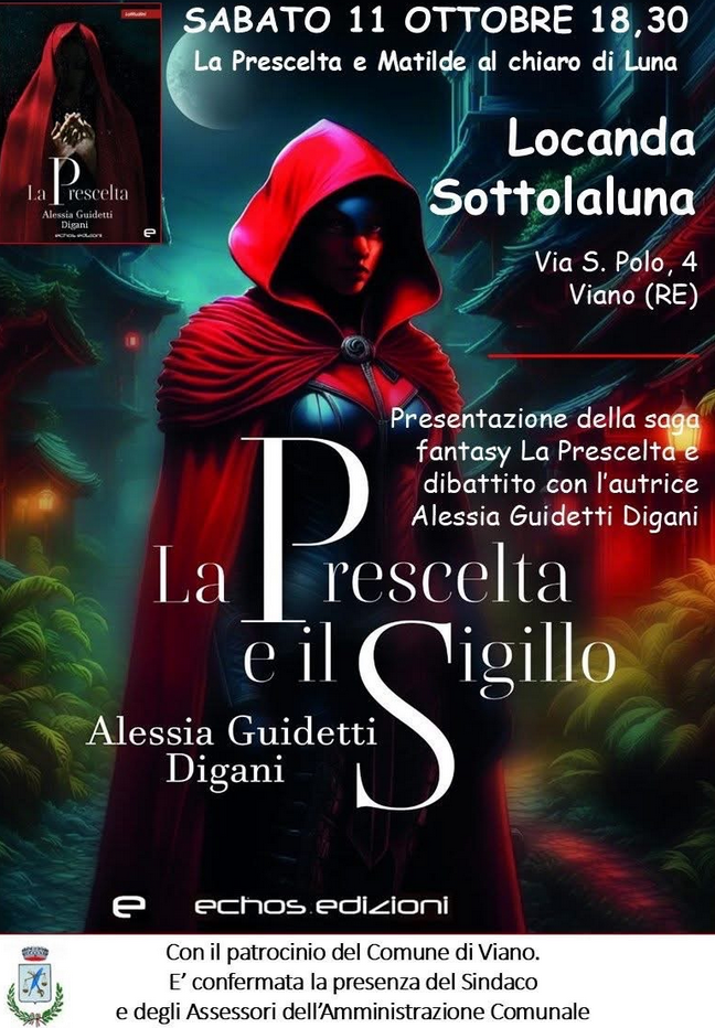 Sabato 11 ottobre alle ore 18.30 presso la Locanda sotto la Luna ci sara' la presentazione del libro " La prescelta e il sigillo"  a seguire il dibattito con l'autrice Alessia Guidetti Digani