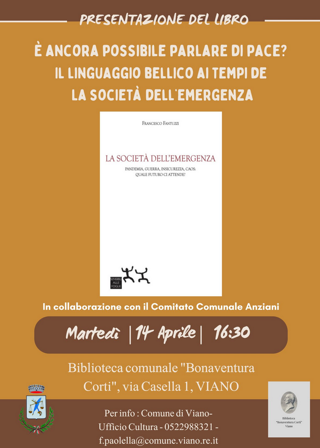 Martedi' 14/04/2026 alle ore 16.30 presso la Biblioteca Comunale in  Via Casella n.1 presentazione del libro  " La societa' dell'emergenza"