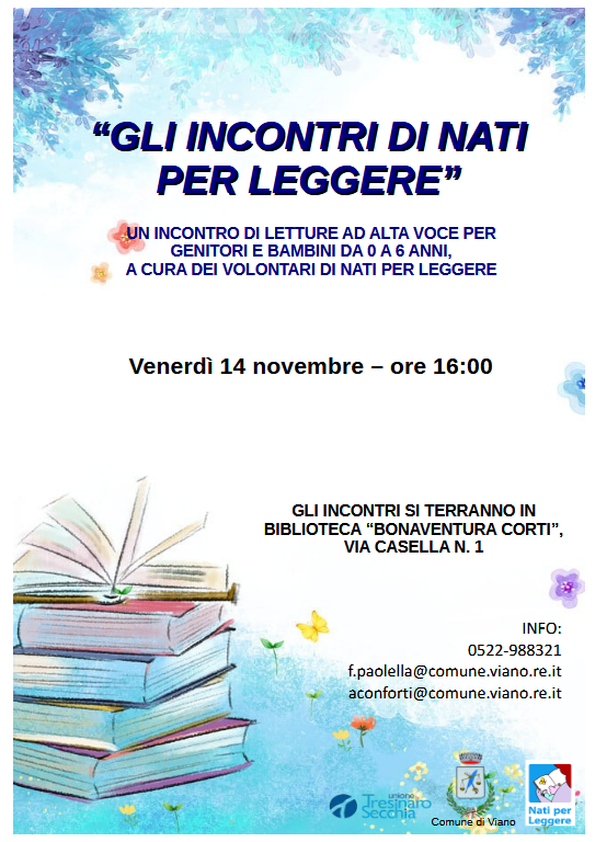 Venerdi' 14 novembre alle ore 16.00 presso la biblioteca In via casella un incontro di lettura ad alta voce per bambini da 0/6 anni a cura dei volontari di nati per leggere