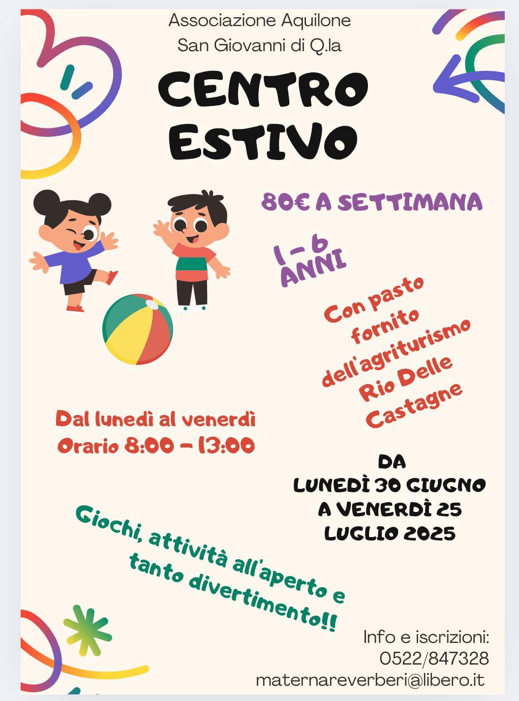 3. ASSOCIAZIONE AQUILONE, via Reverberi 3 Viano, denominazione centro estivo “DON GIOVANNI REVERBIRI”, con sede operativa a Viano, in via Reverberi 3;
